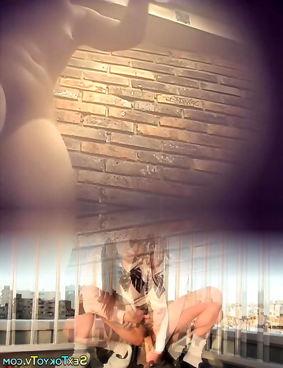 Tanned Japanese girl in uniform changes clothes. From big boobs, wedgie, G-string, mini skirt, white socks to naked