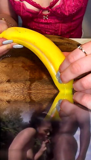 Long Nails Bad Tease With Banana And Lube