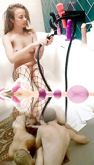 Horny amateur in the bath plays with dildos and vibrators until she can&039;t take it anymore