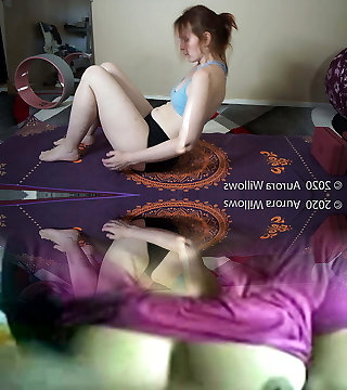 Aurora Willows stretching in booty shorts