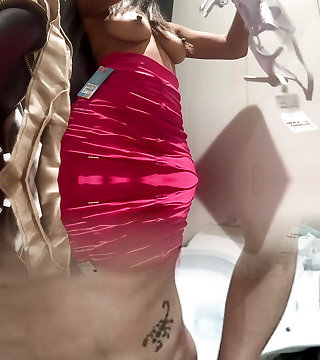 Hot mother tries on many panties in the changing room for the first time