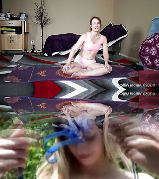 Aurora Willows does yoga in handsome booty shorts