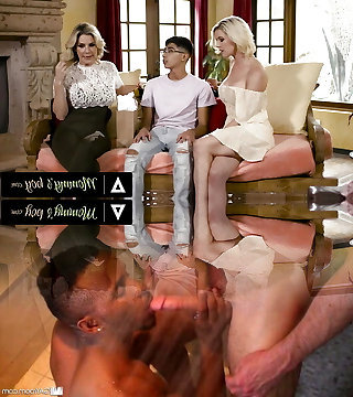 Mummy'S BOY - Hot Blonde Stepmoms Kayla Paige And Kit Mercer Struggle Over Their Sonnie's Big Cock!