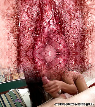 Hairy Bush macro closeup with internal cumshot dripping, Amateur Milf Wife on homemade sextape with the most beautiful hairy bush