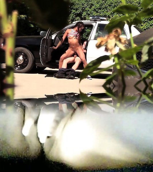 preso dark-hued fanciulla ottiene splooged gola fuori un poliziotto durante il rally