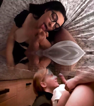 Le Enseno A Mi Hermanastra A Mer Las Bolas De Mi Esposo Y Le Da Su Seed En La Cara Y Pelo