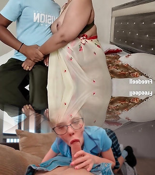 Pregnant Maid observing Family Fuck
