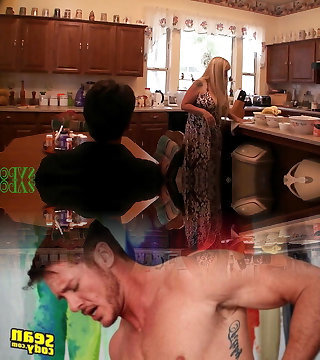 Step-mom seduces her stepson in the kitchen