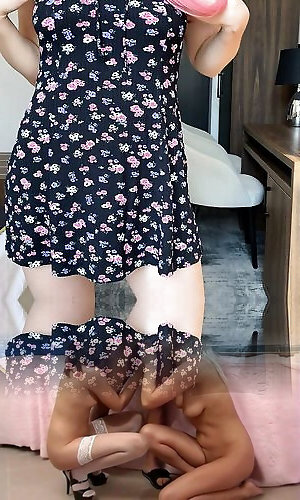 18岁的学生在迷你连衣裙没有内裤cum非常有力