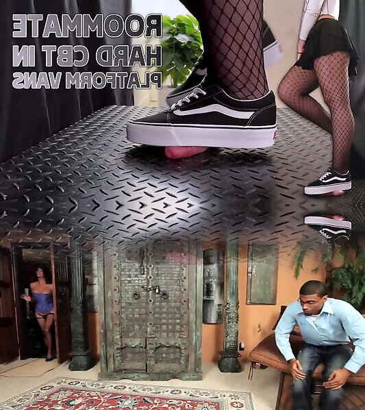 室友粉碎和践踏你的生殖器在黑色平台面包车鞋-Bootjob,Shoejob,Ballbusting,CBT,践踏