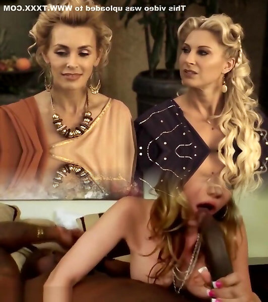 成功的伙伴们很高兴能把两个男子气概的口渴的姑娘们撕碎