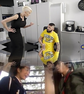 Short haired blonde babe Tanya Virago ravages her employee in the office