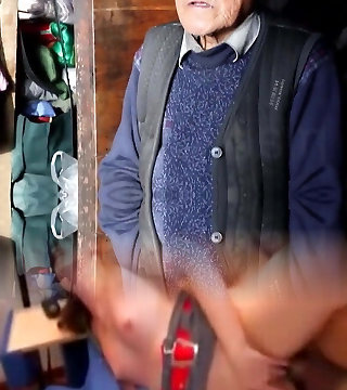 old skank watches man beat off