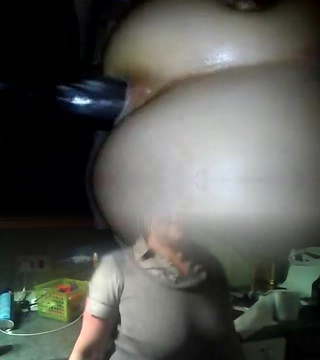 Foot massage with lube, milk and big black butt speculum