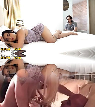 Step mommy and son share a bed in a hotel room - Are you hard step son?
