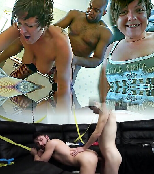Dark Haired stunner anally tucked from behind by dangled ebony boy