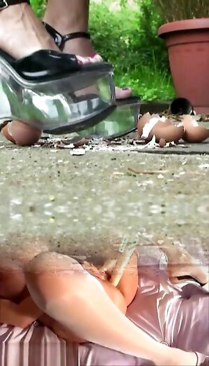 Heels crush balloons. Crushing heels