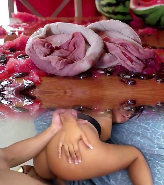 Punching watermelon with nylon feet