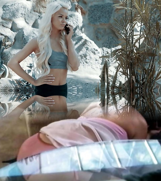 Blonde Beauty Emilia Fingers Her Pink Pussy Doggy Style!