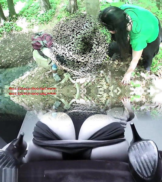 Hanna and Girl Morgana slap victim Joschi outdoors