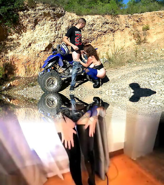 My big-boobed step-mom Kimy Blue really wanted to ride the quad