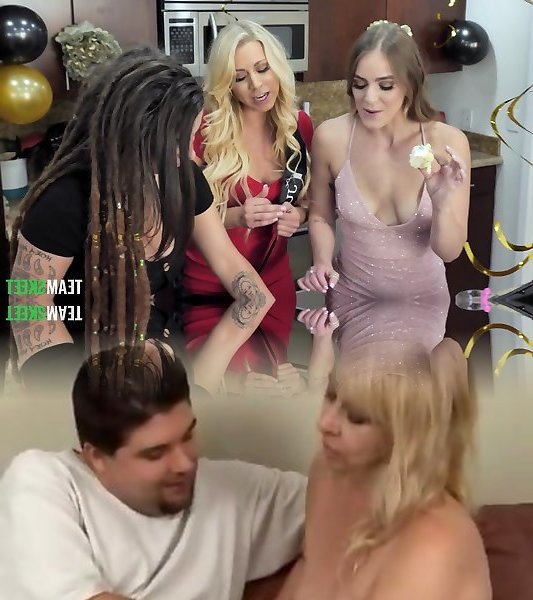 3 housewives are examining strapons at the b-day soiree of Indica Flower