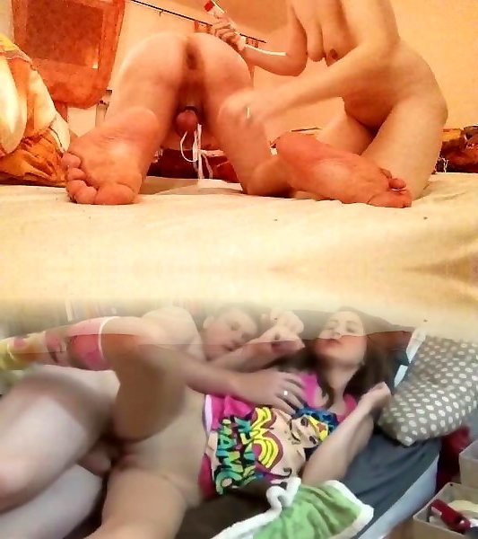 Strap on domina pegging her sub