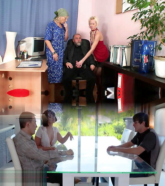 Bony driedup elder dude 3 Way with young office nymph