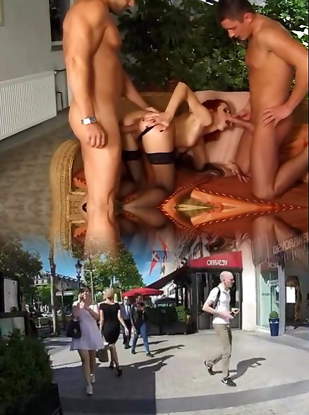 Bony redhead double penetrated in stockings and panties