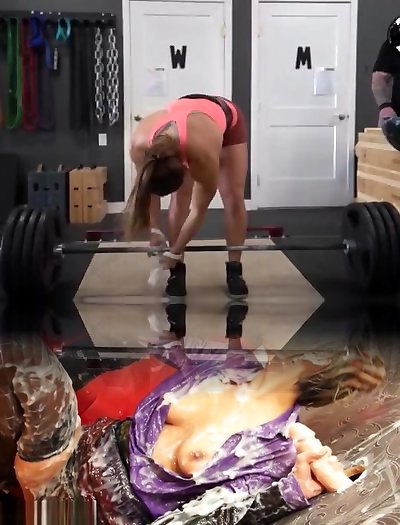 After some powerlifting, Brandi Mae is giving a deep throat to her intimate trainer and getting nailed