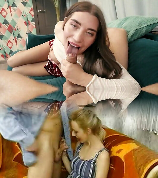 Provocative lengthy haired duel striptease college girl gives head to erected humungous man meat in pov
