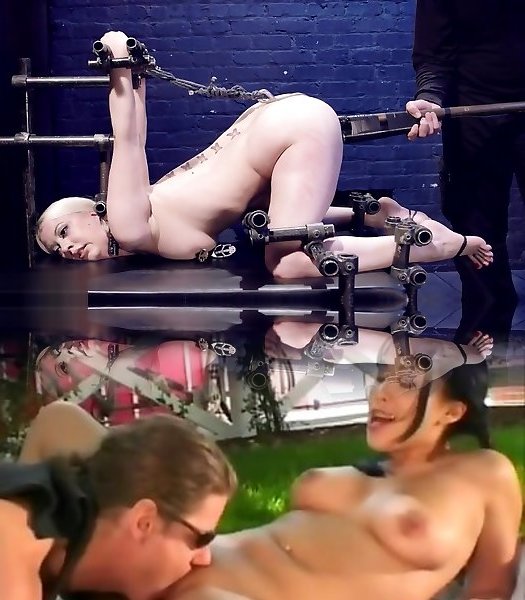 Blonde in strict tool bondage is played