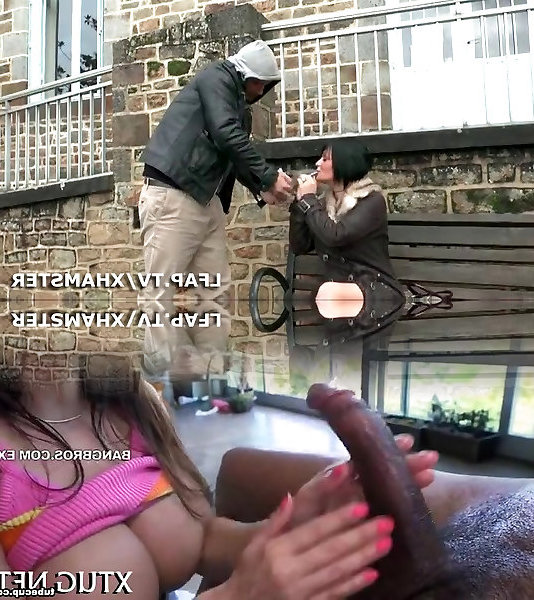 French ultra-cutie is fellating a stiff black man rod and a huge white trouser snake, at the same time