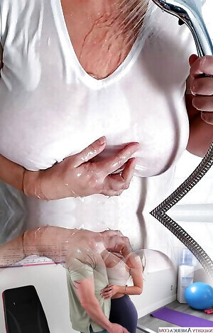 She shoots a load two times in the shower moist t t-shirt