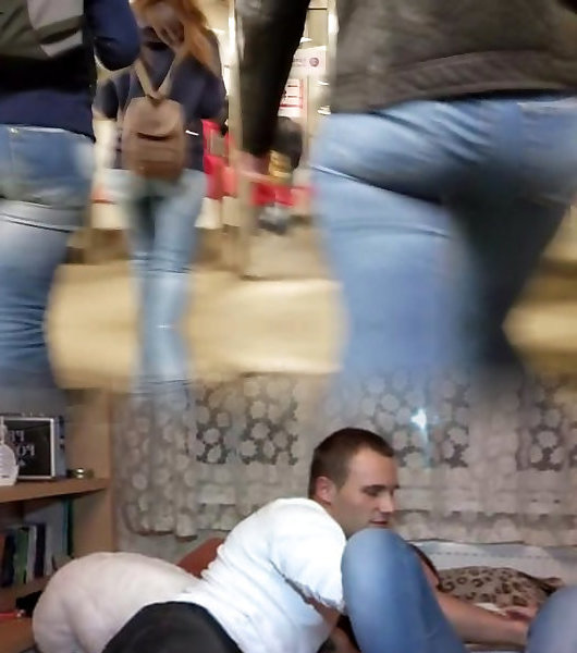 xxx street candid ordering fast food uber-sexy black-haired taut denim