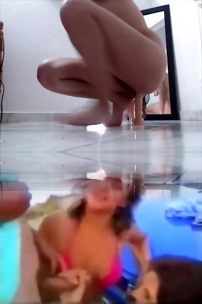 rothaarige und brünette haben spaß cute teen homemade dildoing dem spiegel