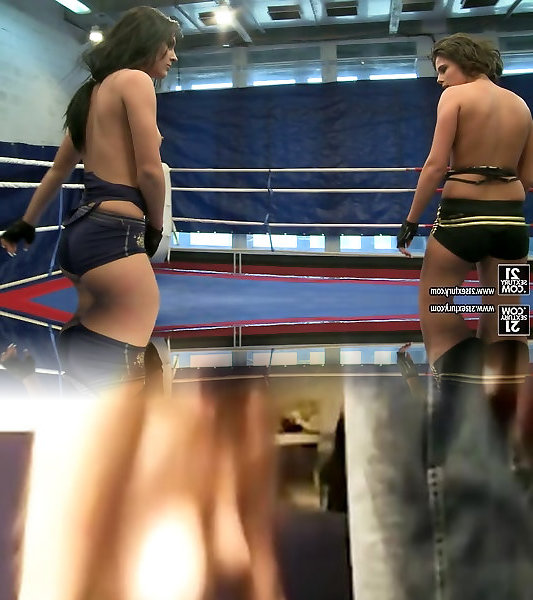 zwei coddled dunkelhaarige lovelies kick gegenseitig cabooses in boxring