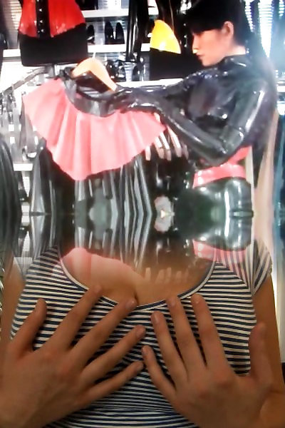 fejira com mädchen in einem vollen latexanzug streichelt bondage
