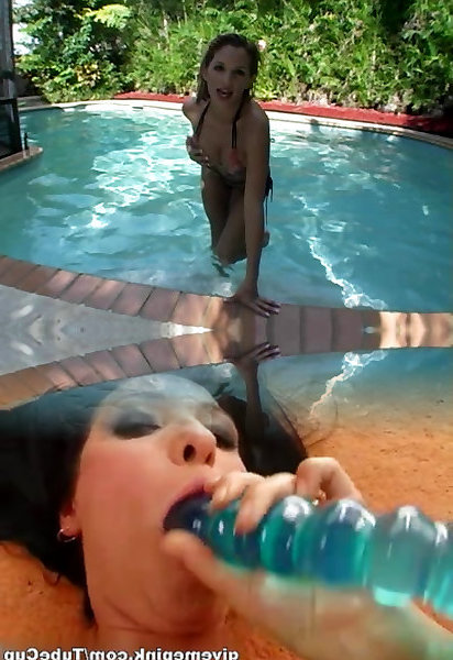 poolside lesben reißen sich gegenseitig mit sextoys