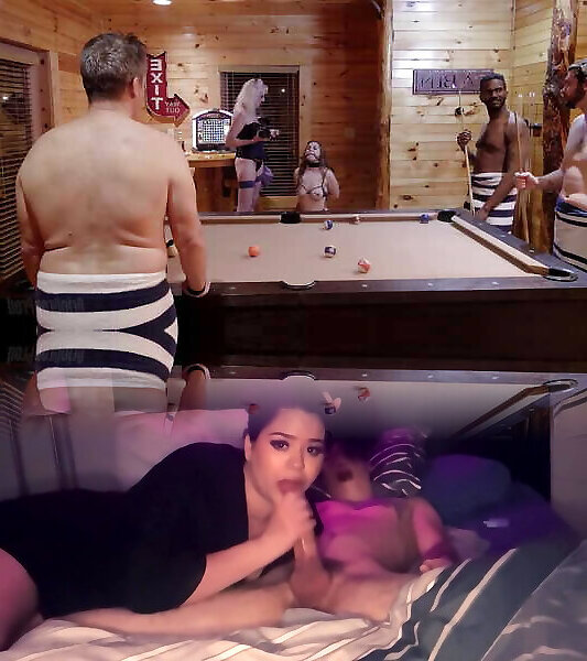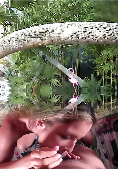verrückte asiatische schlampe wickelt ihre lippen um einen schwanz und schluckt brunnen am pool