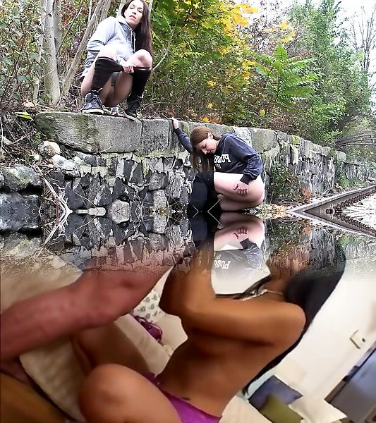 schelmische mädels pissen in der nähe der eisenbahn