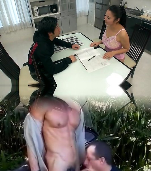 stiefmutter in leggings neckt und lässt ihren stiefsohn den arsch berühren, reiben und abspritzen (über der hose)