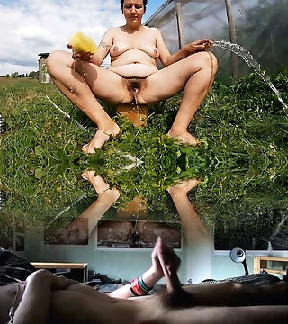 verrückte milf pinkelt vor dem duschen draußen