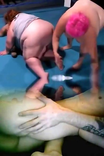 zwei sehr große frauen wrestler höcker midget schiedsrichter