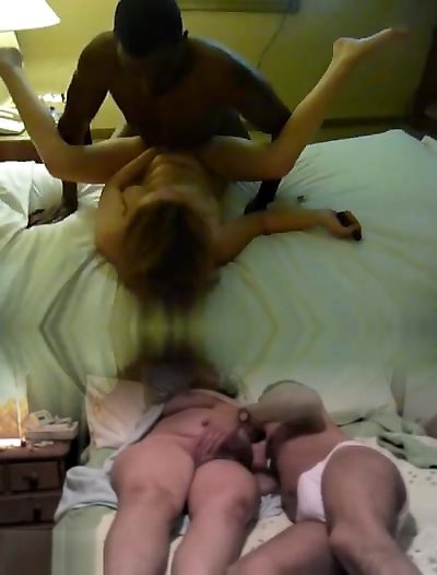 esposa chupa y marido cornudo pasa su mano sobre la polla