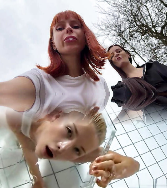 hellion ladies sputare su di voi e ordine di mangiare il loro disordinato scarpe da ginnastica - outdoor punto di vista dual femdom