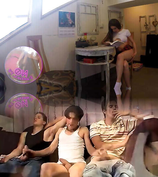 steamy teenie in mini microskirt e due ragazze che osservano il porno insieme per la prima volta in assoluto