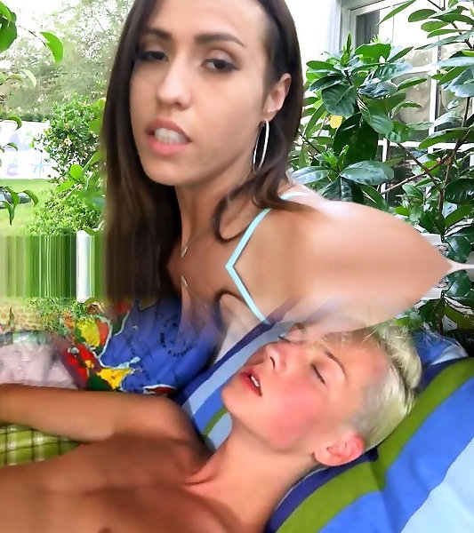 pożądliwa blondynka cierpliwie czeka, aby posmakować jego spermy, gdy brunetka dostaje jej dupek poręczył