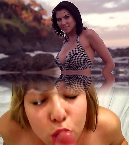 красотка топлесс делает минет и мастурбирует от первого лица