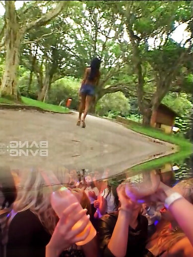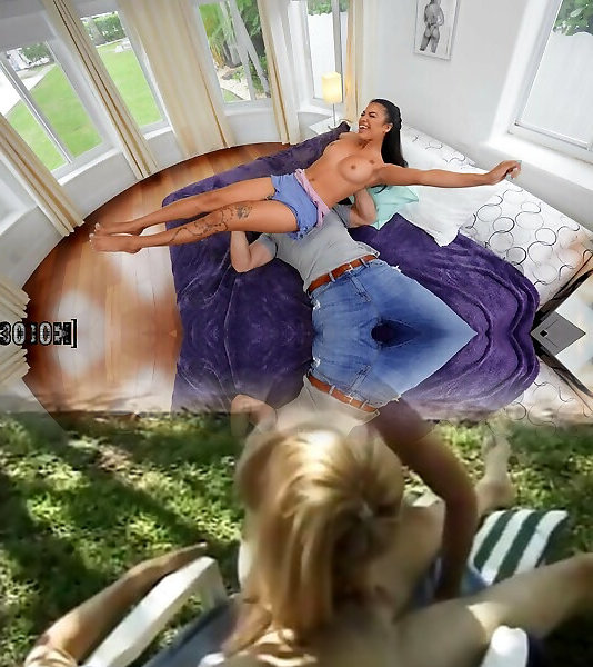 漂亮的悉尼科尔在一个超级淘气的三人组中,她的黑头发的朋友们中间